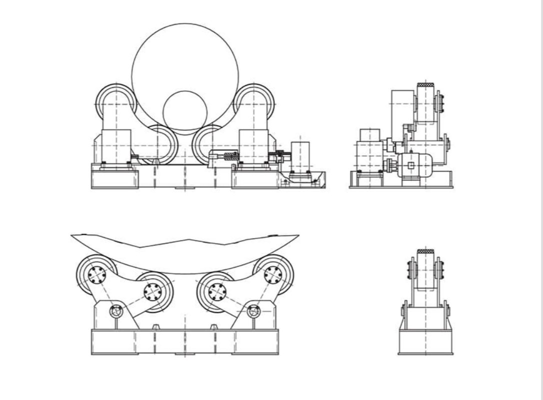 The power unit, idler unit, electric control box, and hand control panel are the major components of rotators. Either of the 40 ton self aligning rotator motor drives two sets of rollers receives the finished drive, ensuring good hold for the job.
